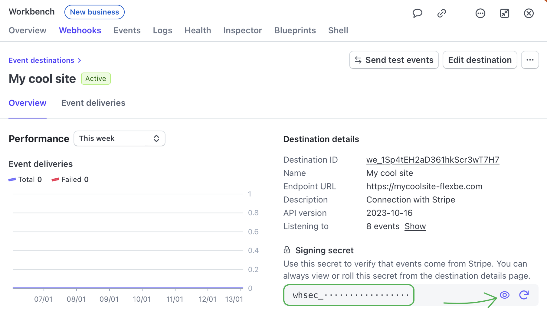 - 8 Now copy the Signing secret key by clicking the eye icon.