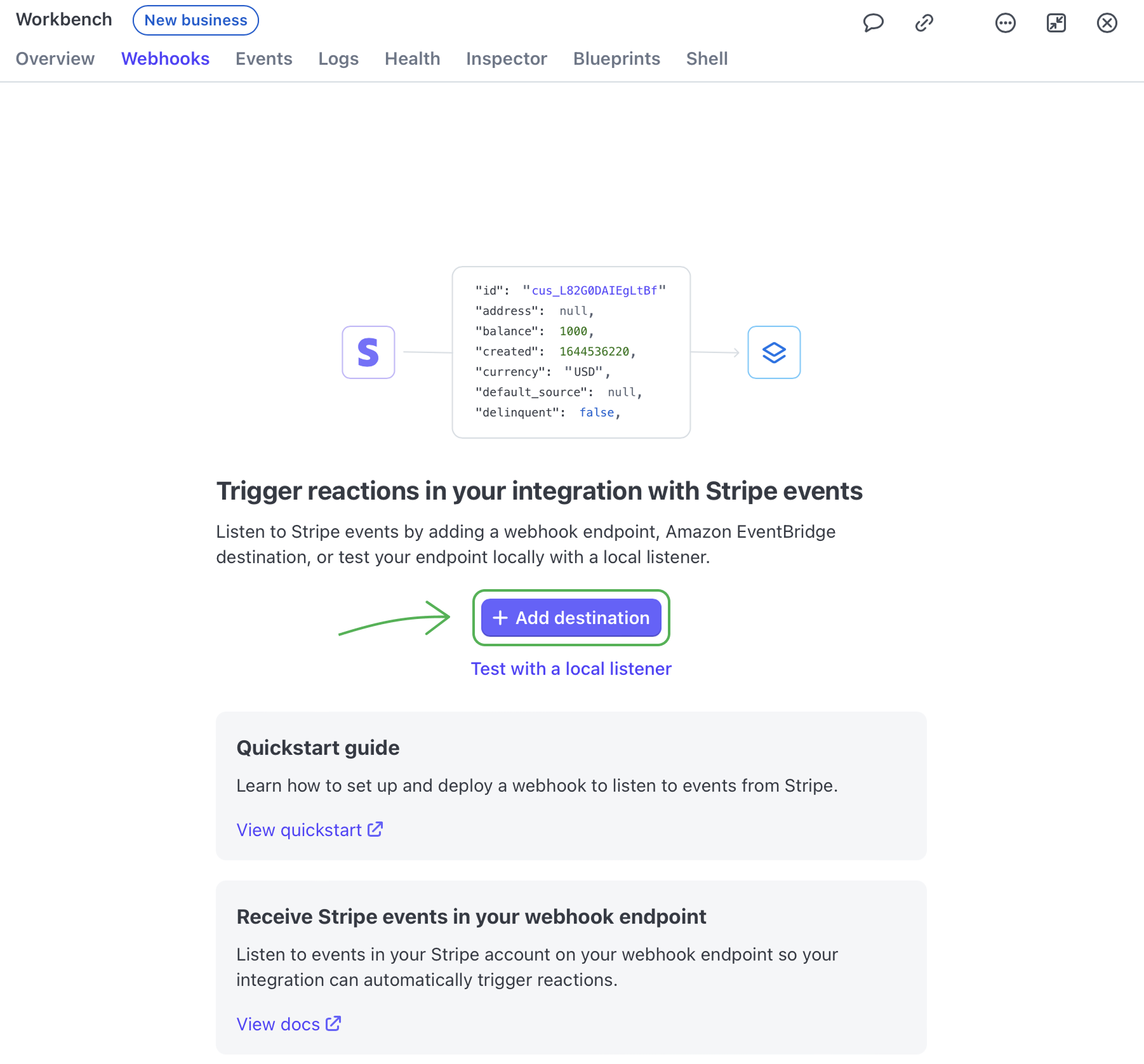 - 5 Now you need to get the third key. To do that, go to the Webhooks tab and click +Add destination.