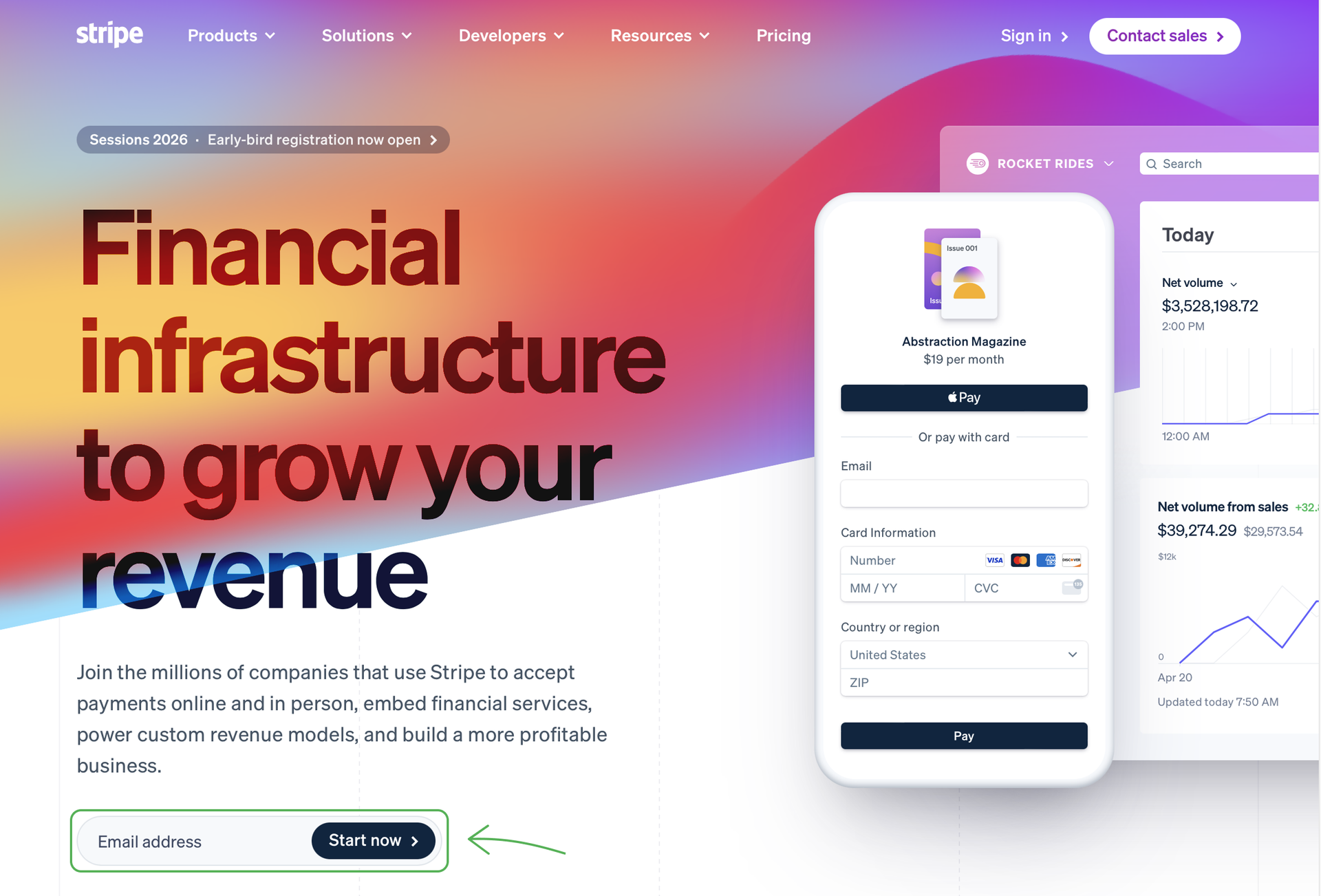 - 1 Sign up with Stripe by clicking Start now.
