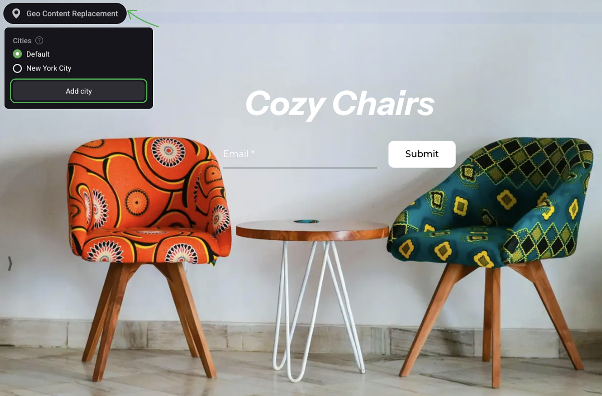 Geo content replacement (GCR) means several versions of one section where the content changes depending on the user’s geographical location. You can change titles, images, texts, products — different versions of sections will be displayed to users from various places.