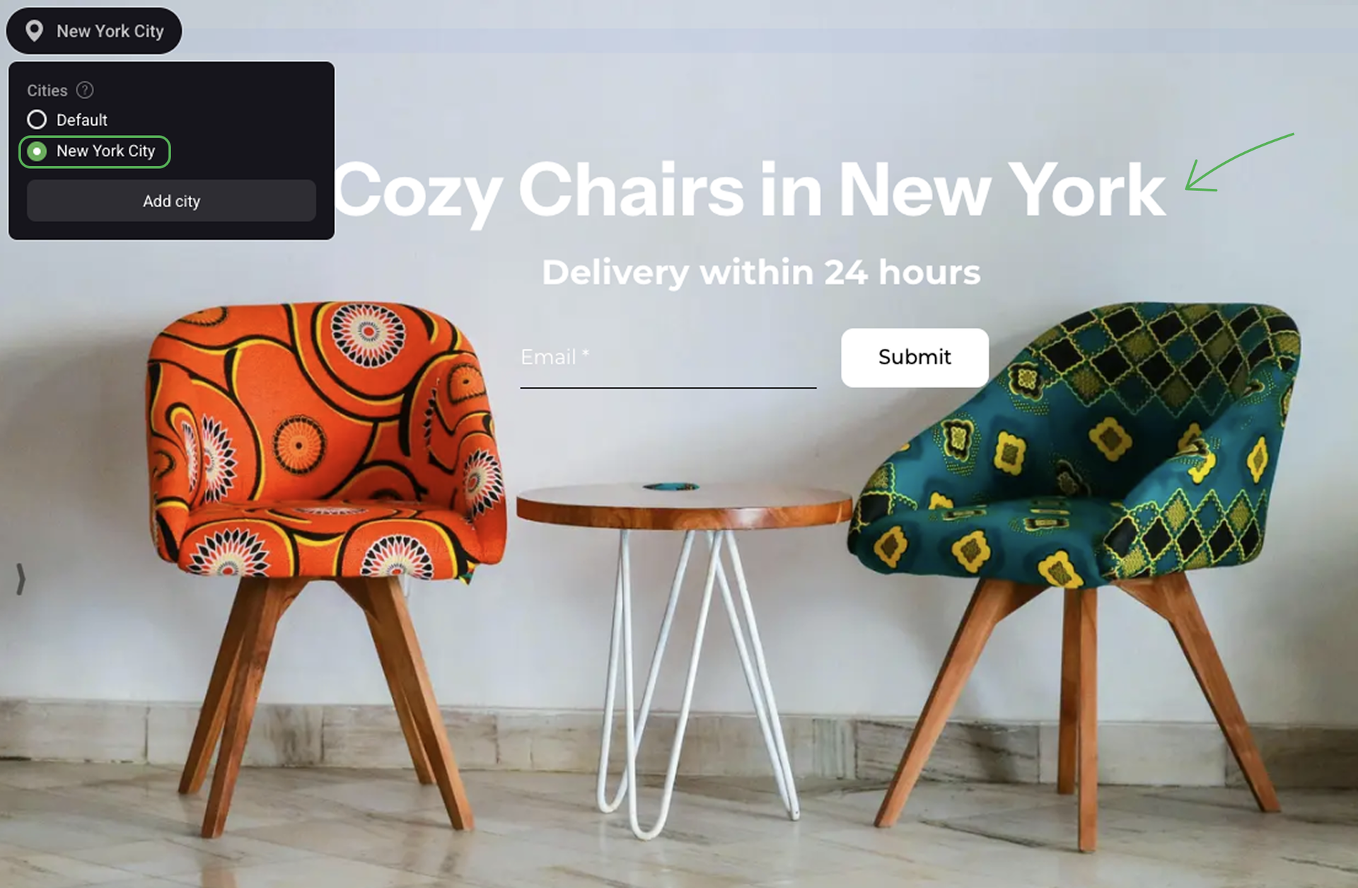Let's add New York. Now there are two versions of the current section: a Default section that is displayed to users from all the cities except for New York.