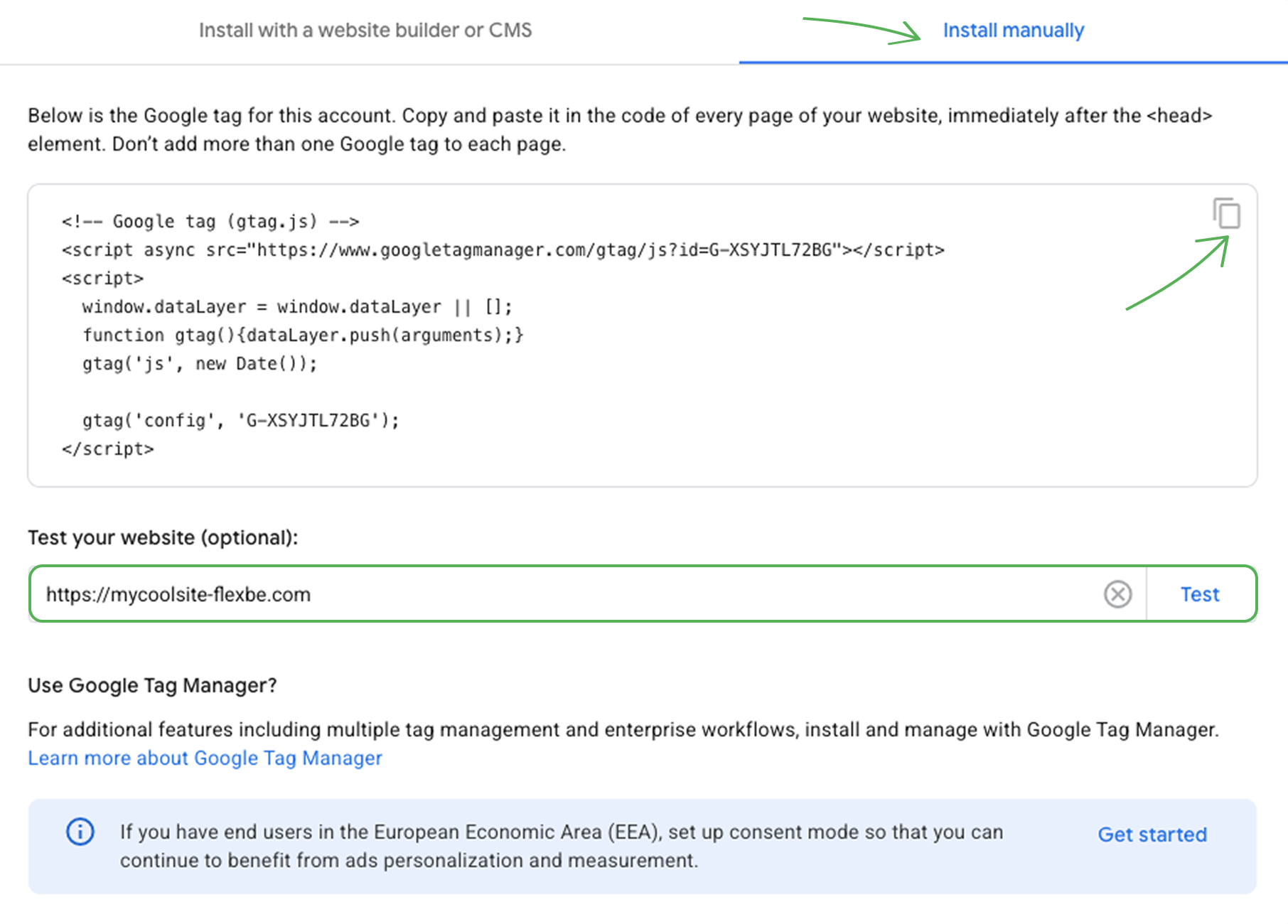 At the bottom, go to View tag instructions, then switch to the Install manually tab.