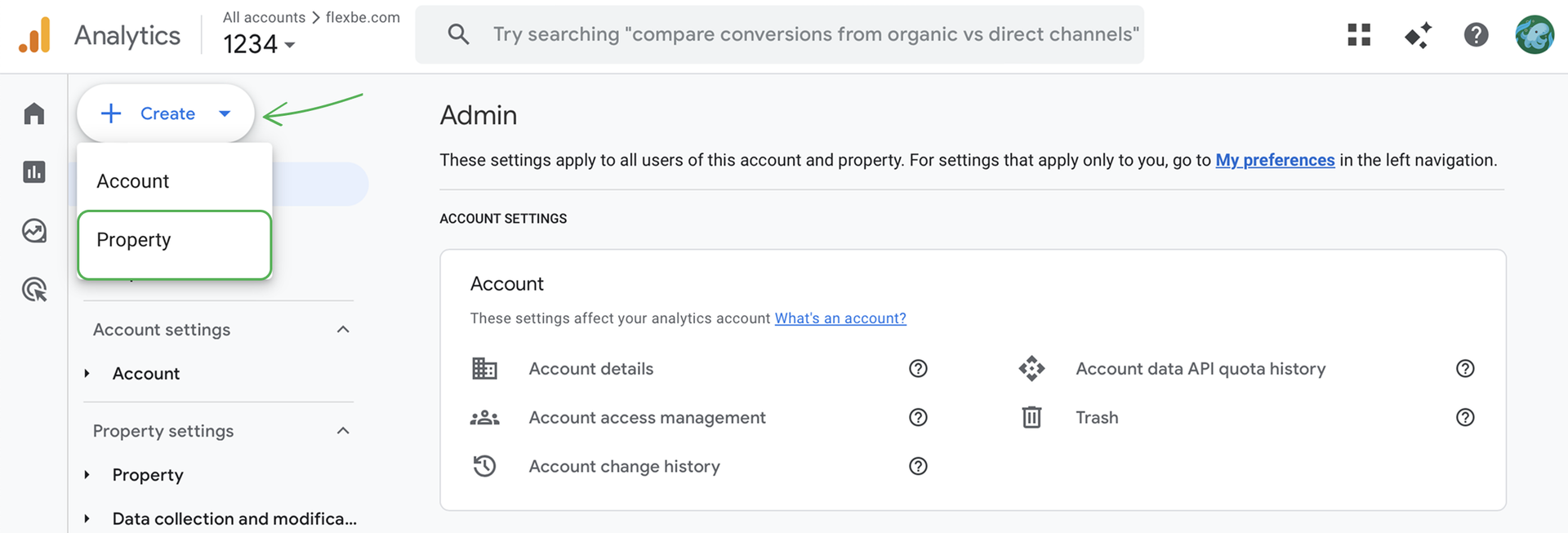 Before setting up Google Analytics 4 (GA4), you need to create a property. Your property is a site or an application about which GA is collectsing statistics data.