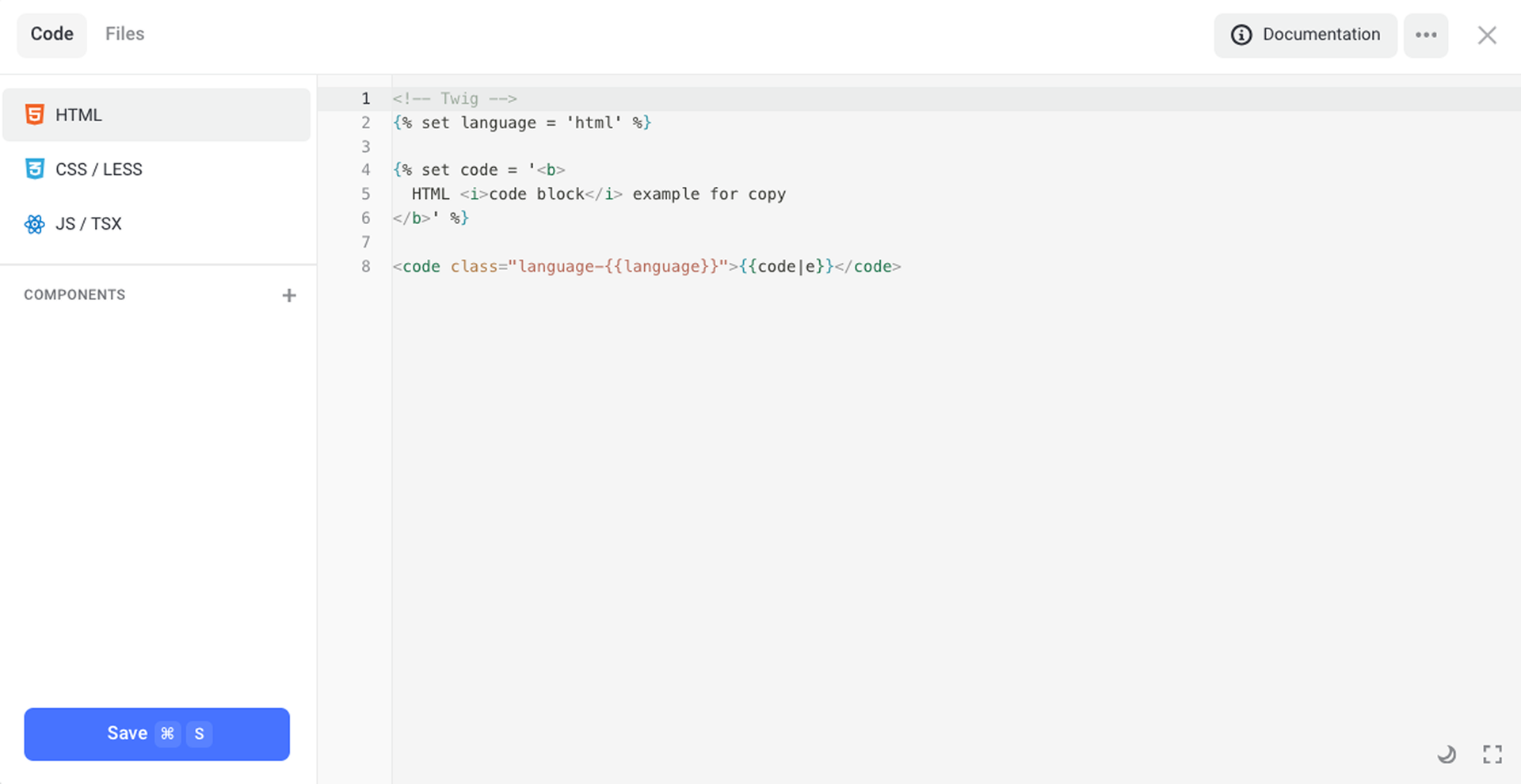 We recommend against embedding JavaScript code in the script tags; it's better to use the JS / TSX tab instead.