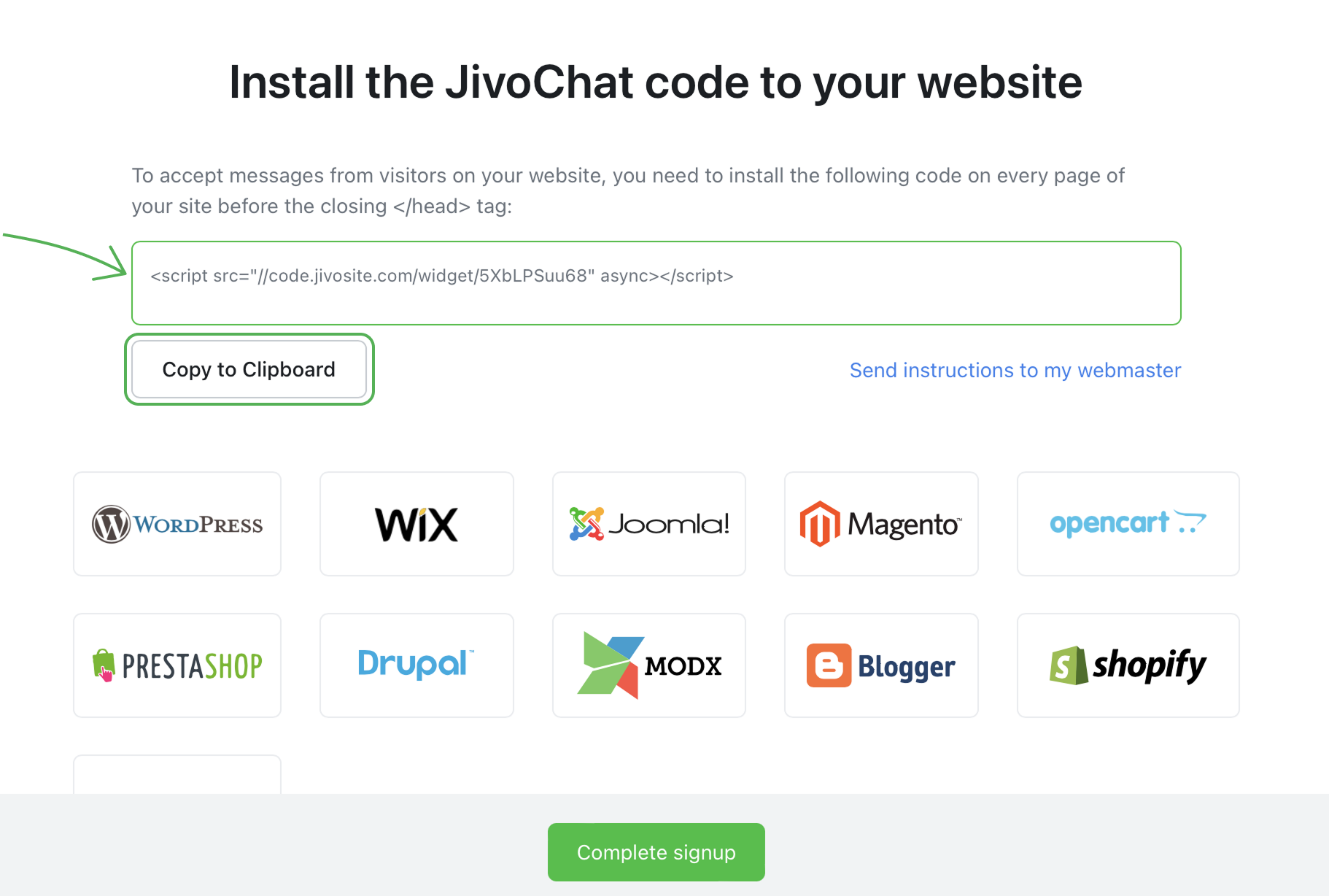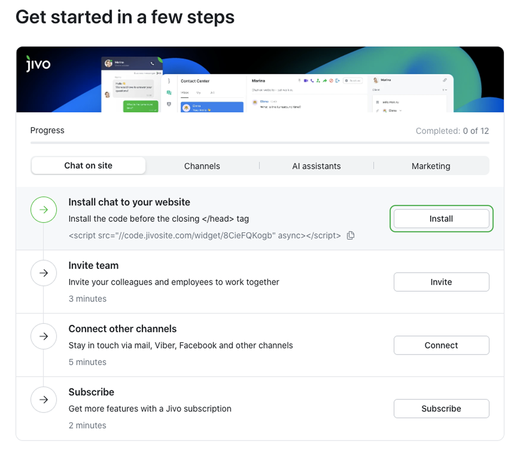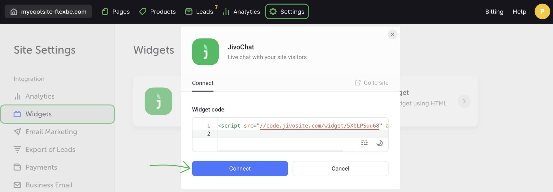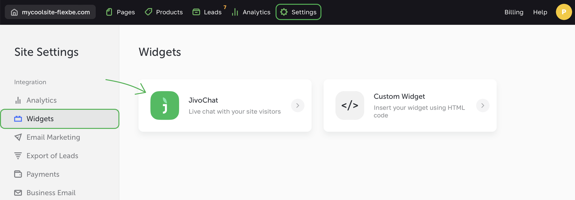 To connect JivoChat, go to Settings → Widgets and choose JivoChat.