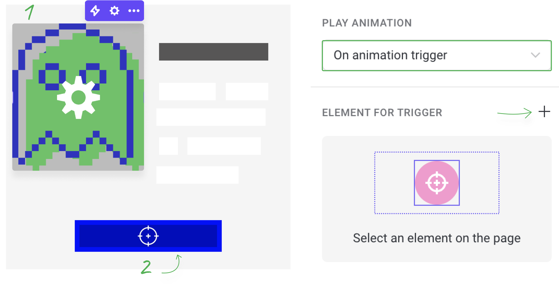This is the only type of animation that needs two animated elements. Here you can connect one animation to the step(s) of another animated element.