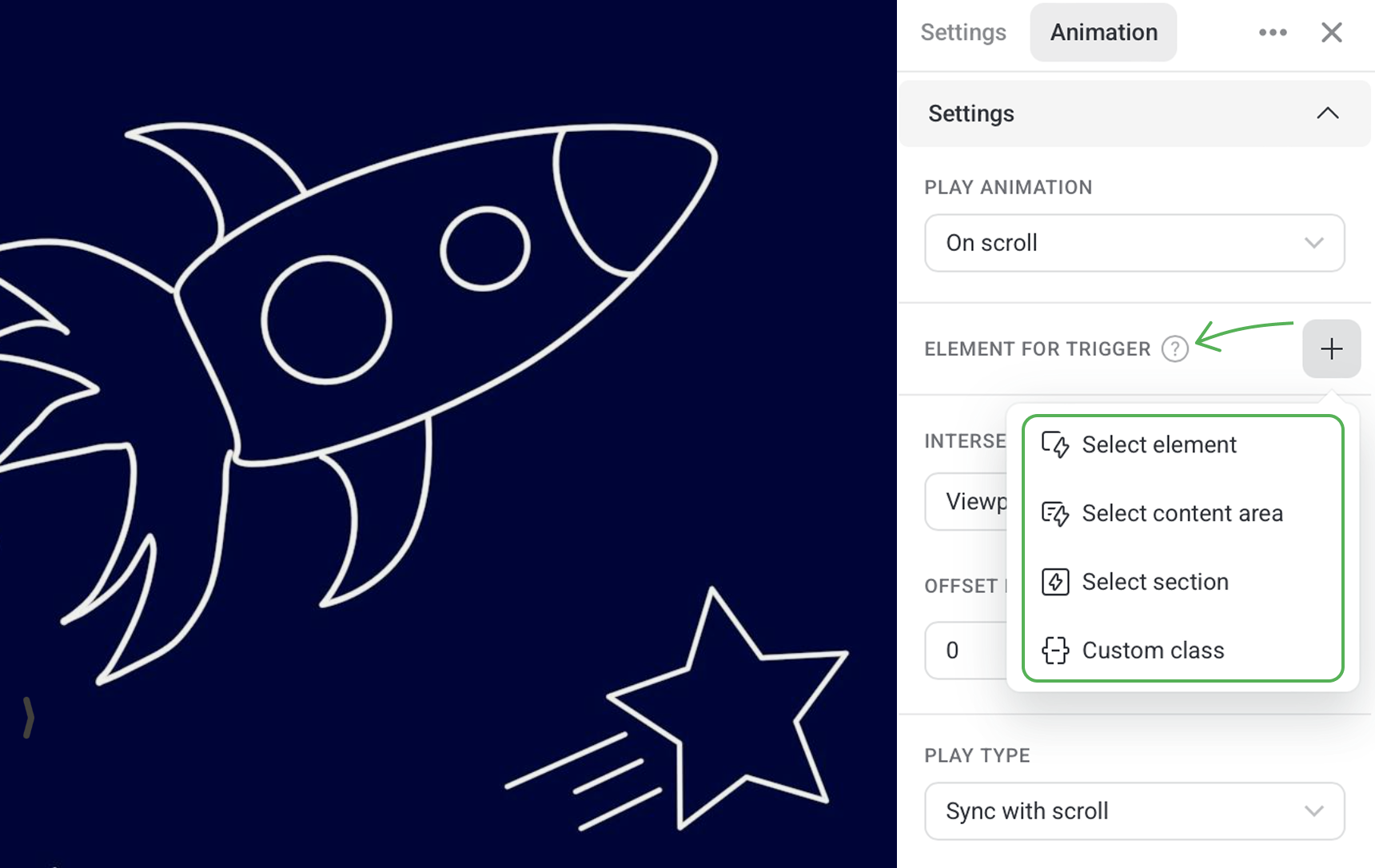 NOTEYou can set only one element or section as the trigger On scroll.