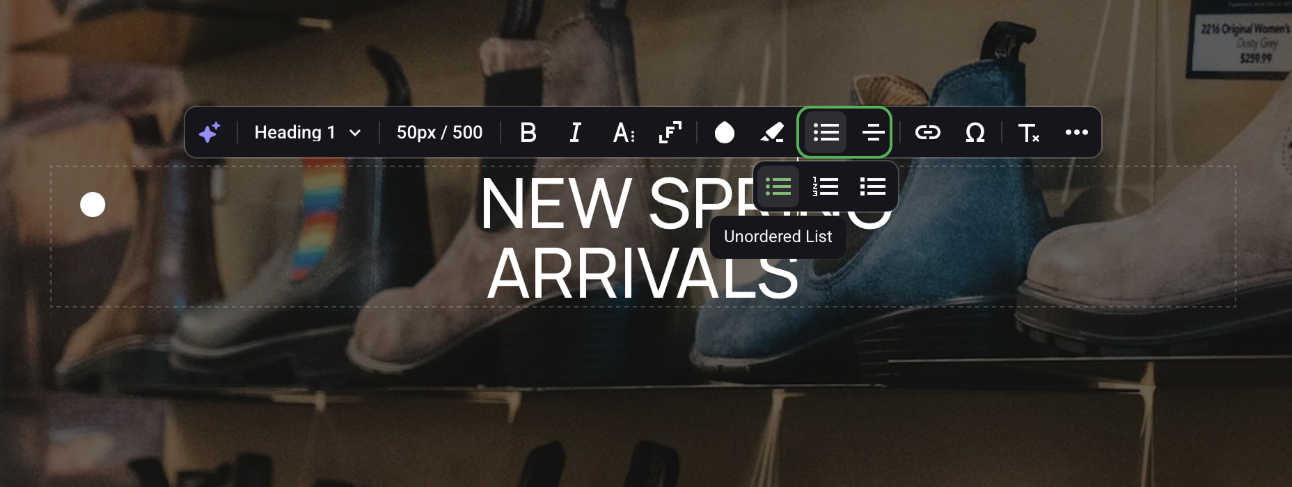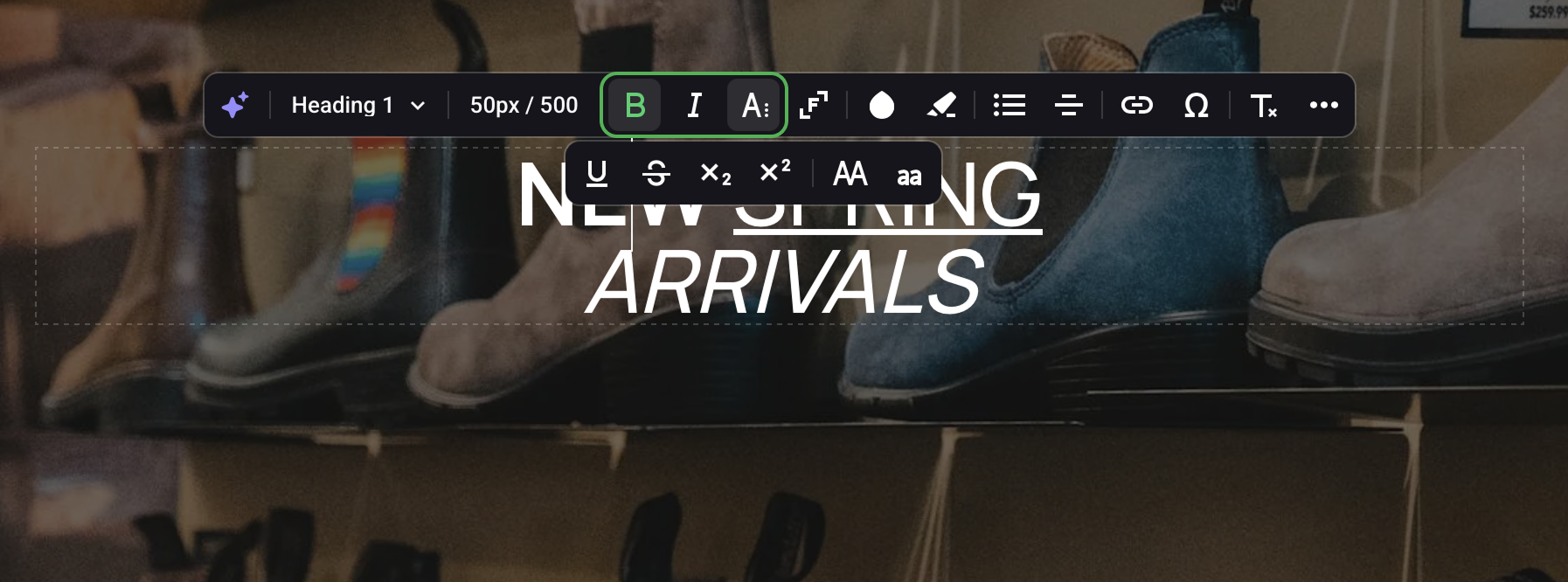 Go to Text settings to set the font size and weight, line height and letter spacing.